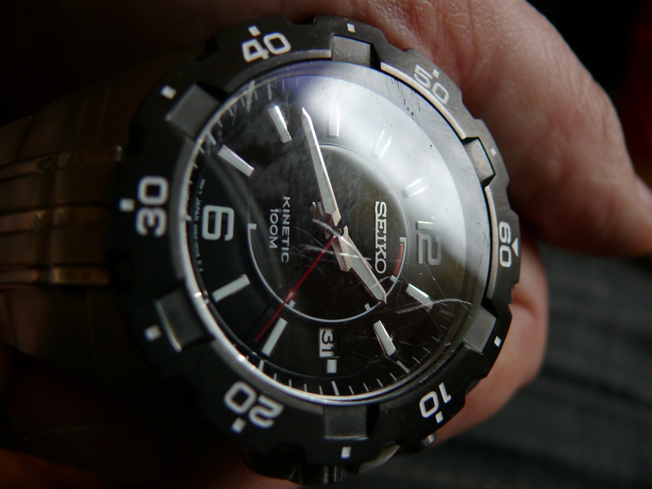 Вот решил вынести в отдельную тему, может быть у форумчан найдутся не менее интересные фотографии и истории. История такова. Три месяца назад отдал свои часы Сейко кинетик , поносить сыну , ему 18 и это его первые часы. Сын учится в Петербурге в нахимовском училище . Отдал ему часы , чтоб рука привыкла к часам тк на день рождения купил ему Сейко спортура с будильником . Сын спортсмен , плавец итд . вашему вниманию хочу представить часы , в которых плавали , дрались , играли в футбол , боролись , не снимали с руки 3 месяца , теряли в бассейне , носили на ступне итд . Часы выдержали , зарядка полная , но вот внешний вид так себе , прямо скажем неочень.