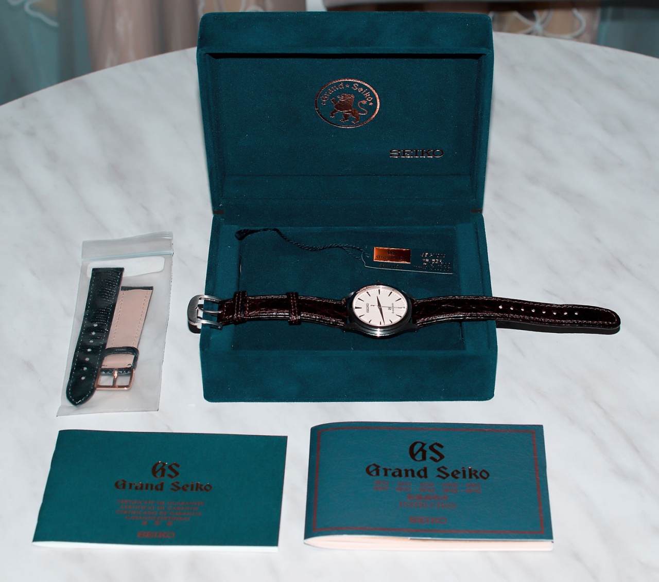 Отличные костюмные Grand Seiko (SBGX009) с поразительной отделкой стрелок и меток (многогранный металл обработан в зеркало), цифер имеет цвет слоновой кости (меняет оттенок в зависимости от освещения). Легендарный кварцевый калибр серии 9F (+/-10 секунд в год) с термокомпенсацией и межпрофилактическим интервалом 50 лет!