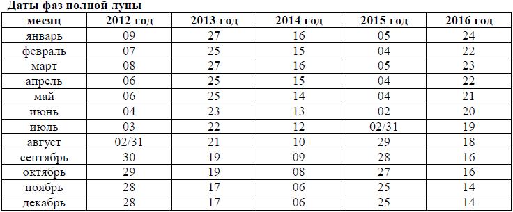 предыдущей фазы полной луны (см. таблицу даты фазы полной луны ниже). Для