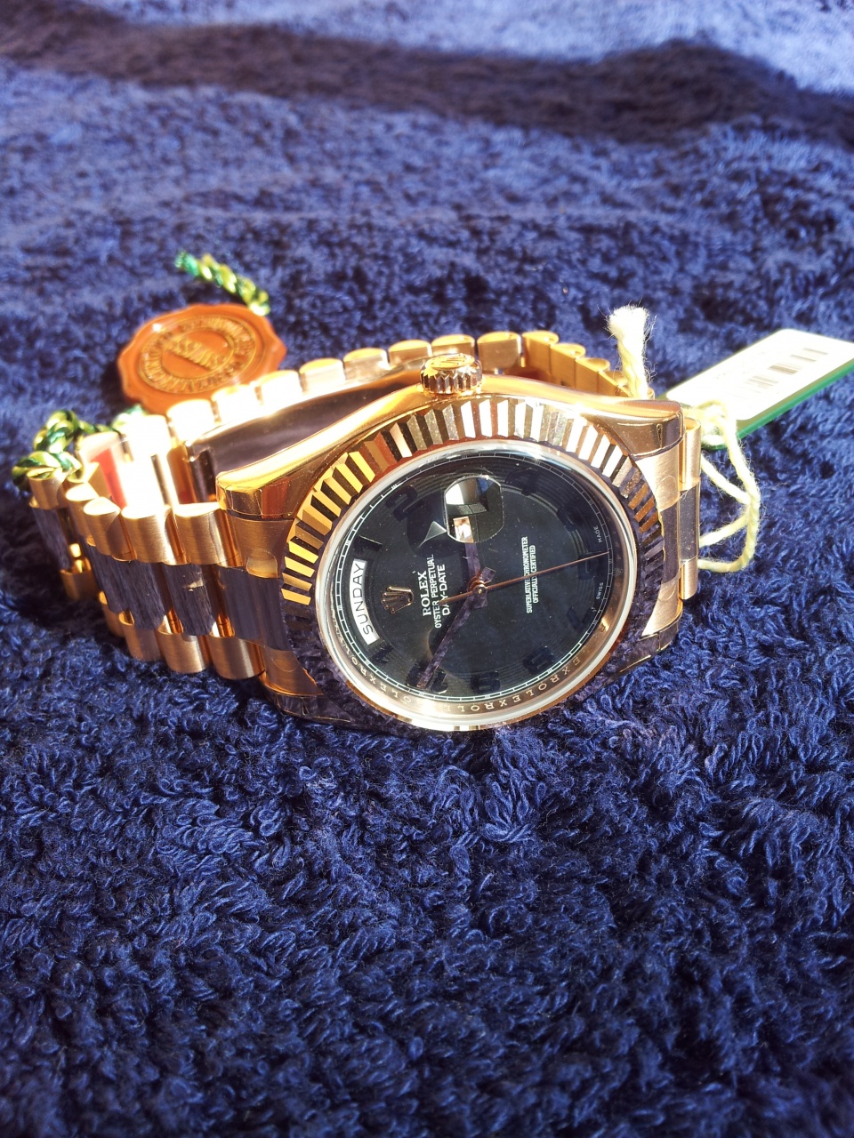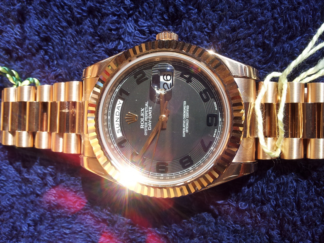 --Rolex Day-Date II President Pink Gold Grey Dial Arabic Numerals ref. 218235--