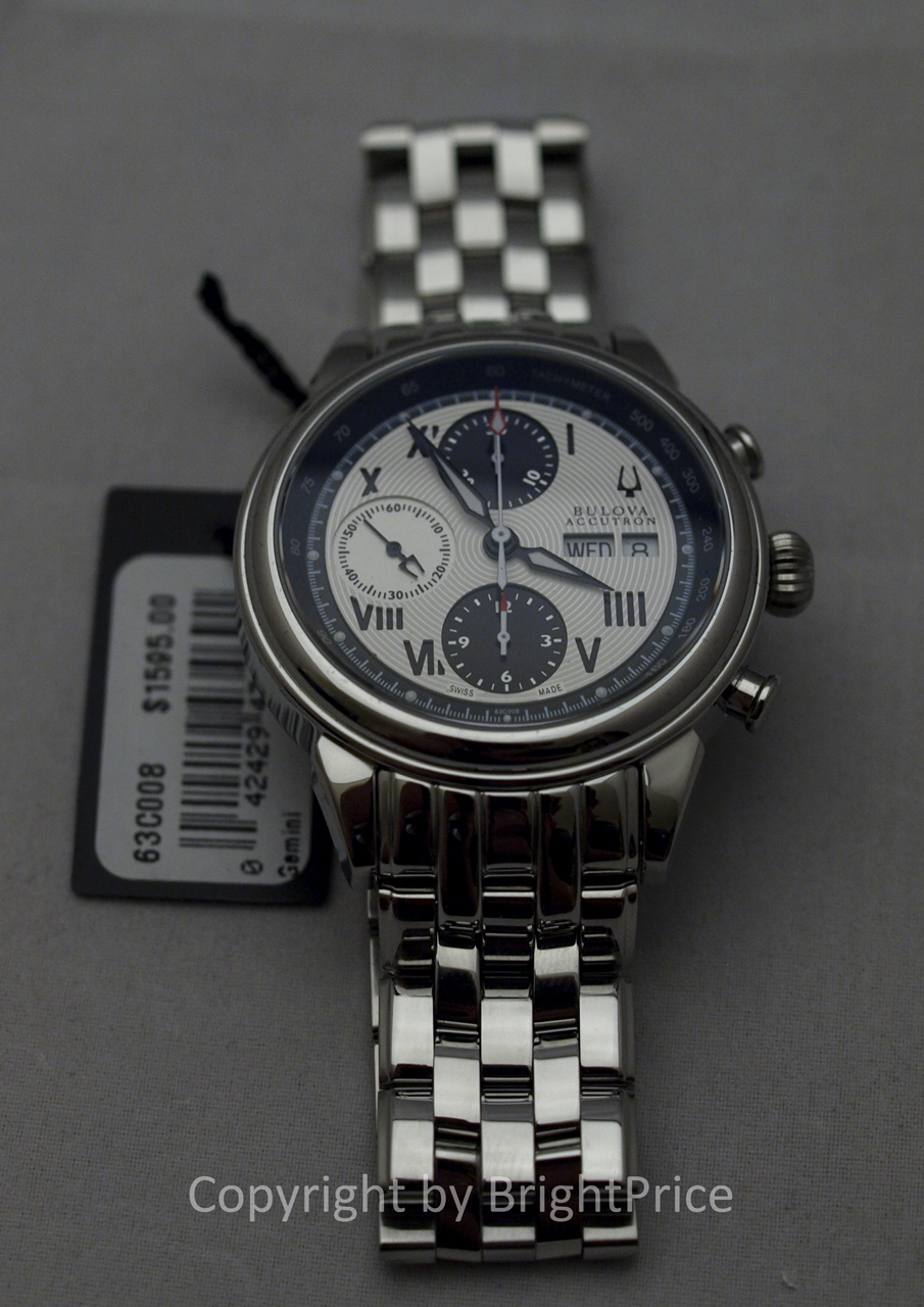 Часы Bulova Gemini 63С008 - классический хронограф, с вынесенной секундной стрелкой, принадлежащие серии Accutron, одной из самых высокоточных марок часов в мире. Стальной корпус, луковичная головка, стальной браслет - всё это гармонично стилизовано под 60-е года 20-го века.