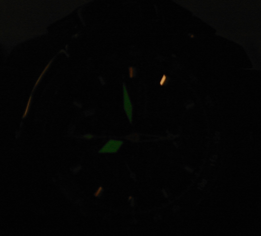 Особенность: япония, кварцевый хронограф с будильником, завинчивающаяся задняя крышка, светонакопительный состав на стрелках и маркерах часа