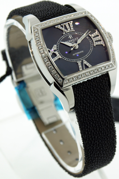 Черный Циферблат-натуральный перламутр с индикацией даты.