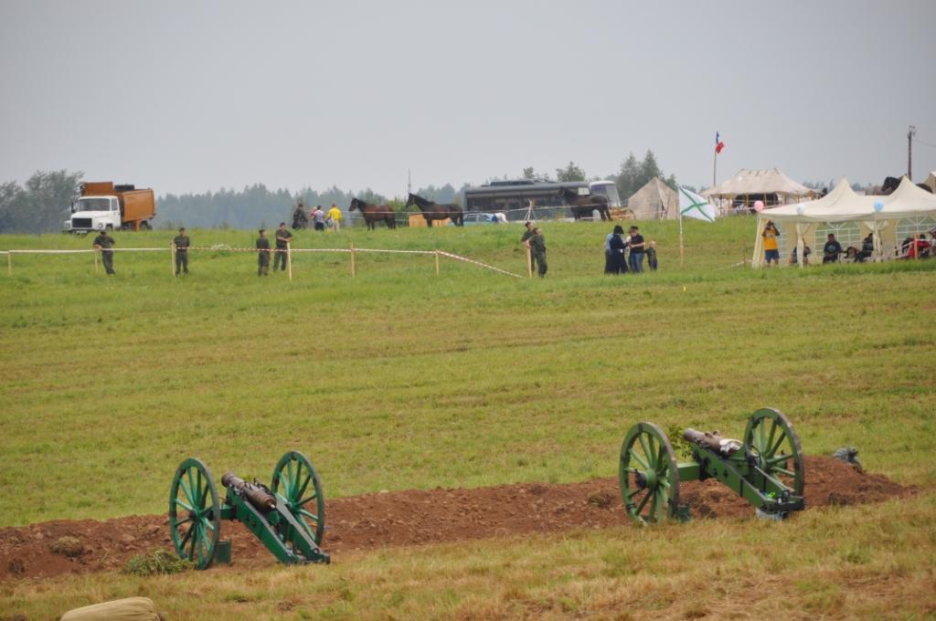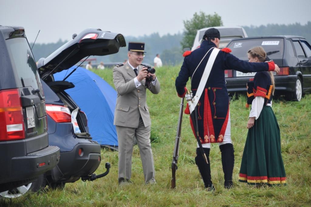 Проезжая мимо поля вместо тракторов Беларусь и прочих Д150 увидел подготовленные к бою пушки. Поскольку рылами они стояли и не на восток и не на запад, а на север, то идентифицировать принадлежность не удалось. Зато встретился дедушка, явно какой-то Кузьмич или Савелич, из обозников. Весьма колоритный тип. На фотоаппарат не среагировал. Должно быть, кроме кистей и мольберта других изобразительных средств не ведает Зато ведала юная охранительница лагеря. Строго покрикивая: "Туристам нельзя" нагло запросила с меня 30 рублей за снимок. Юные Гавроши оказались покладистее и денег не требовали. Но и порядка в их зоне ответственности было меньше - какая-то девица явно шпионила в лагере, пользуясь тем, что обитатели не предполагали, что этой большой черной штукой можно запечатлевать диспозицию.