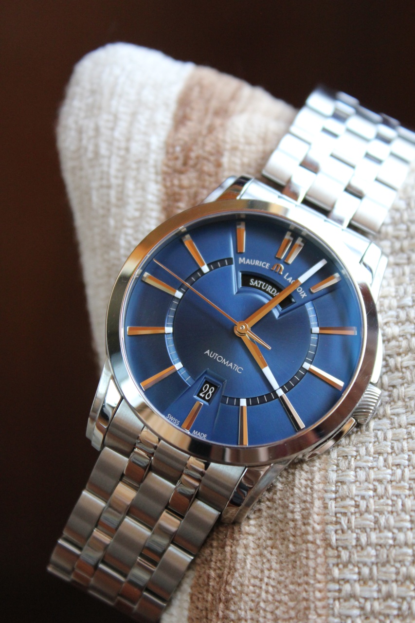 Вот сегодня наконец собрался с мыслями, чтобы упомянуть о замечательных на мой взгляд часах. Еще недавно спрашивал здесь совета, и вот свершилось - уже чуть больше месяца являюсь счастливым обладателем Maurice Lacroix Pontos Day Date в варианте синий "циферблат + браслет"