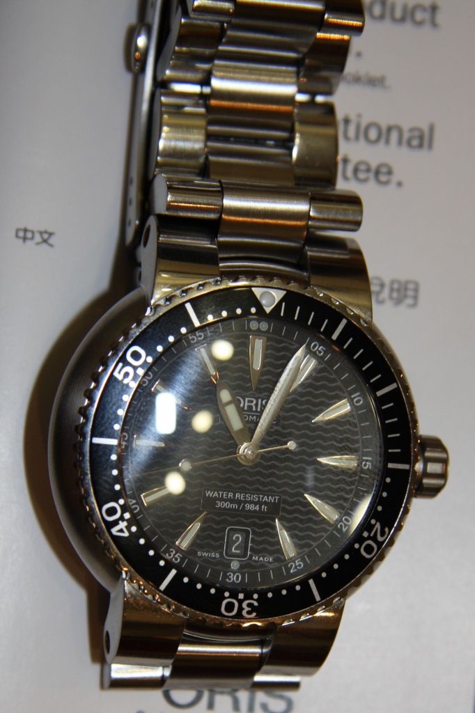 Я бы поставил любой другой браслет, но расстояние дужек 10мм - еще один гениальный ход Oris. А сдавать я их не вижу смысла - буду носить на коже. На коже дырку проковыряю, если что. А Seiko, похожий на Rolex я тут на форуме видел, но он стоил значительно дороже, чем Oris - 2500$. Да и стекло меня не сапфировое испугало. Я браслет сфотографировал отдельно, но уже в теме продажа аксессуаров.