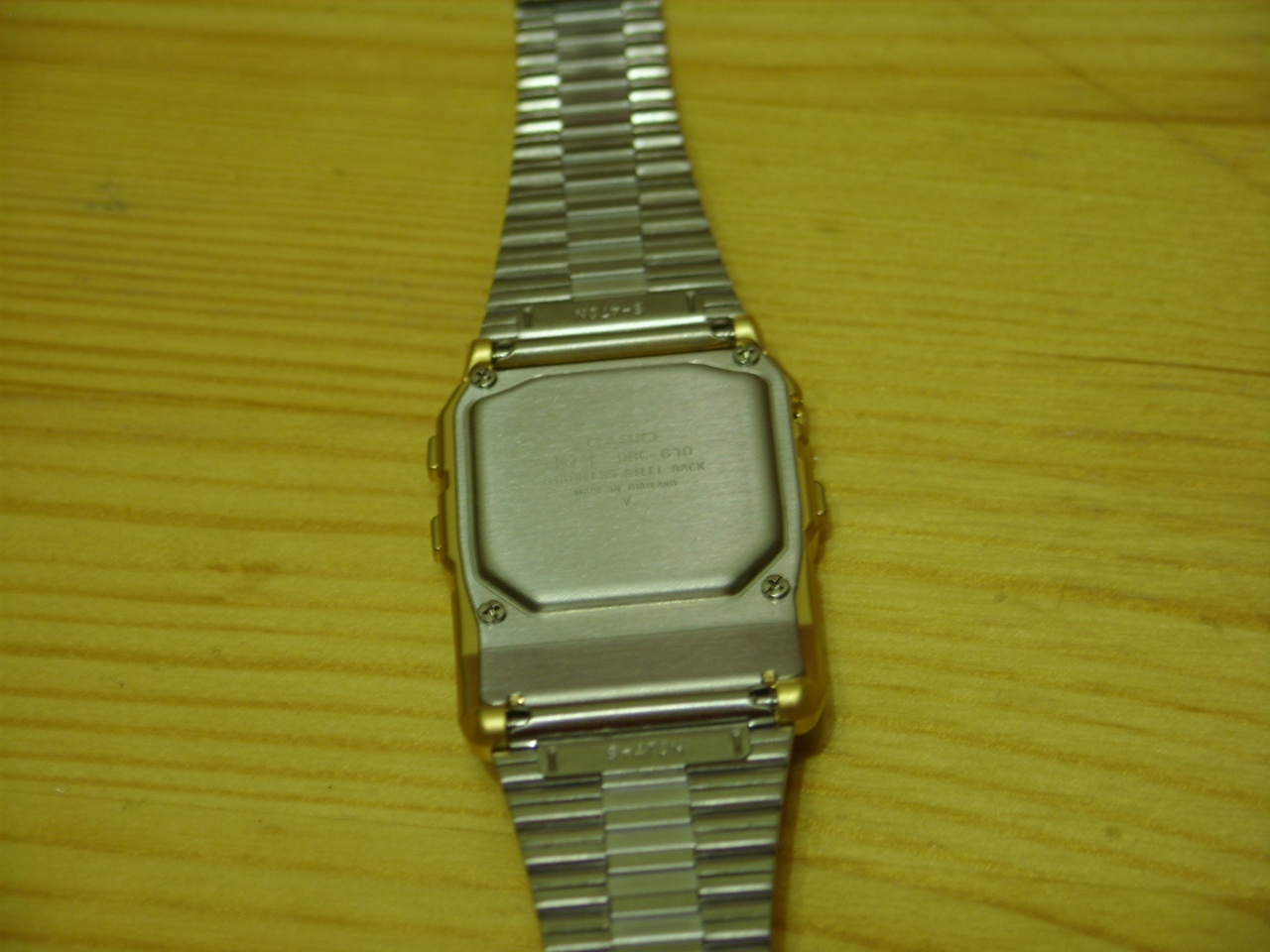 Уважаемые форумчане представляю вашему вниманию Casio DBC-610 серии Data Bank. Долго определялся с выбором часов. Сначала свой взгляд останавливал на шоках серии 6900, показались массивными. Затем смотрел в сторону минишоков той же 69 серии - не устроила цена. Так же дорогими показались белые GWM 850. И однажды на ибее наткнулся на представляемые мной DBC-610. Выбор в датабанковской серии большой начиная с простых DB -200 и заканчивая, как мне показалось ,самой продвинутой моделью DBC-610. Определенную роль в выборе именно этой модели сыграло наличие таких же(кмк) часов у Андрея Малахова. Так же дала о себе знать ностальгия по 80-м годам прошлого века. И недолго раздумывая я обратился за помощью купить мне эти часики к небезизвестному и уважаемого мной JediNewTime. Заказ был сделан 13 октября и спустя 18 дней , т.е. 1 ноября, я получил на почте мелкий пакет из Гонконга. Это был обыкновенный конверт, содержимым которого было две вещи : часы и нерусифицированная "камасутра". В пластиковй корпус часов вживлен 676 модуль. Браслет нерж. лицевая сторона покрыта "золотом" , внутренняя без покрытия. Застежка позволяет быстро ориентировать браслет практически на любое запястье. Это удобно. Функционал модуля позволяет: читать время, дату,год,день недели ; записывать данные в режиме записной книжки ; имеется режим расписания до 50 записей ; производить математические действия ; определять время в 24 городах мира ; устанавливать одинарный ежедневный будильник ; таймер countdown до 24 ч. ; секундомер с дискретностью в сотые доли сек. Так же присутствует традиционный ежечасный двойной бип. Что еще можно сказать? Кнопки клавиатуры и боковые "легкие" в нажатии, не как на mudman. Браслет красиво переливается звеньями при освещении и волосы на руке пока не щиплет. Подсветка зеленым диодом, достаточно, что бы прочесть что либо в темноте. Из минусов считаю отсутствие влагозащиты, пластиковый корпус (металл было бы лучше), не громкий сигнал, не знаю на сколько хватит "золотого" покрытия. Остальное, при аккуратном ношении, не критично. На мой взгляд - эффектные часы и мне очень понравились. Доволен, как слоник.