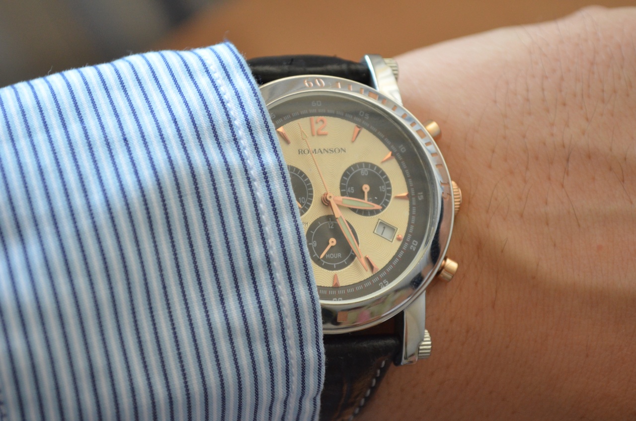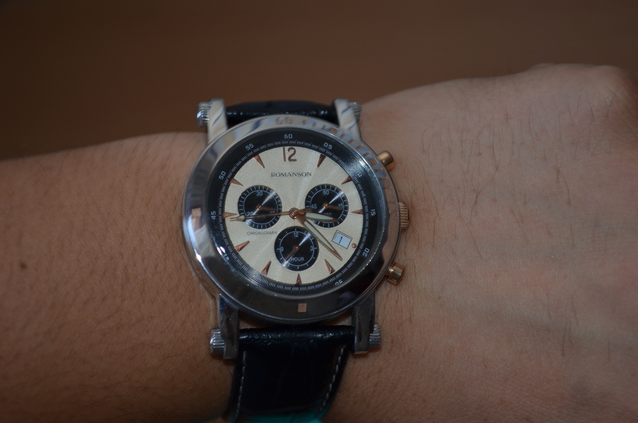 Romanson Tl6503pm - именно эти часы были подарены мне на мой день рождения еще в апреле этого года, уже после того как я начал посещать этот форум и прочитал тему о Романсонах и связанных с ними моветонах, скажу честно радости от подарка я испытал не мало и продолжаю испытывать каждый день когда ношу их. Итак, производитель Ю.Корея , механизм кварцевый, размер 45мм, материал корпуса выполнен из нерж. стали с частичным напылением PVD, ремешок кожаный, водостойкость 3 АТМ , стекло сапфир. Давно хотел хронограф , собственно имею. За пол года службы напеканий нет, за исключением ремешка, ранее опыта носки оных не было. Ремешок очень хороший , однако учитывая что в апреле у нас уже тепло , а лето выдалось на редкость жарким , от ежедневного ношения ремешок стал впитывать неприятные запахи и через 5 месяцев начал трескаться. справедливости ради должен сказать что в часах и мыл руки и мылся и в баню ходил )))) в связи с чем заказал на ебэе каучуковые, и уже установил. корпус за время ношения подвергся микро царапинам , это видно на фото, в остальном все отлично !