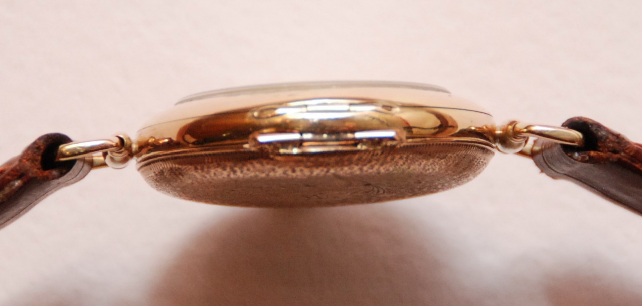 4. Вид сбоку со стороны, противоположной заводной головке (09.jpg, 10.jpg). Следы пайки белого цвета. Разные петли. Центральная рамка запилена для подгонки петли.