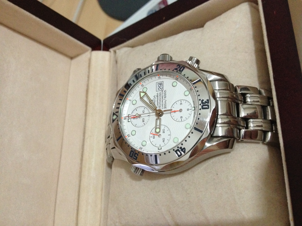 Продам часы OMEGA Seamaster Professional Chrono Diver 300М. В представлении не нуждаются. Калибр: Omega 1164. Хронометр с автоподзаводом, родиевое покрытие, хронограф. Запас хода: 44 часа. Выпуклое, антибликовое, устойчивое к царапинам сапфировое стекло. Корпус из нержавеющей стали. Циферблат: белый. Особенности: Hавинчивающаяся заводная головка; Вращающийся в одном направлении ободок; Гелиевый клапан; Дата; Хронограф; Хронометр; Малая секундная стрелка. Браслет с возможностью быстрого удлинения для надевания на гидрокостюм.