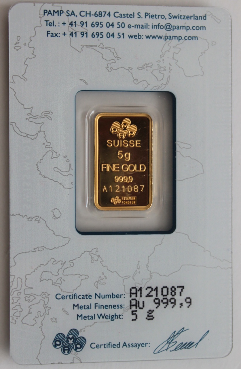 PAMP - Produits Artistiques de Métaux Précieux – художественные изделия из драгоценных металлов – это аффинажный завод, основанный в 1977 г. в Швейцарии, качество продукции которого считается одним из лучших в мире. Золото с маркировкой "PAMP" признано оптовыми продавцами золота и посредниками во всём мире, благодаря чему последующая перепродажа слитков не вызывает затруднений и через несколько лет после их покупки. Для справки - в мировом производстве чеканных золотых слитков лидируют 4 аккредитованных производителя, и все они находятся в Швейцарии. Их продукция составляет 35% от мирового производства чеканных слитков: "PAMP"; "ARGON HERAEUS"; "METALOR"; "VALCAMBI".