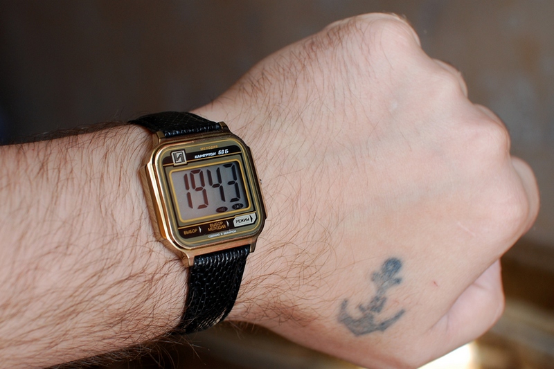 Подкупили меня её квадратные формы и большие легкочитаемые цифири дисплея. Наложилось всё это великолепие на проснувшуюся где-то в глубине моей белорусской души ностальгию по безвозвратно ушедшему отрочеству, и "дрогнули полки" - потянулась рука к бумажнику, отслюнявил я четыреста рубликов за белорусского "Камертона" да двести шестьдесят за итальянский ремешок "Nagata" и ушёл прочь с новым приобретением.