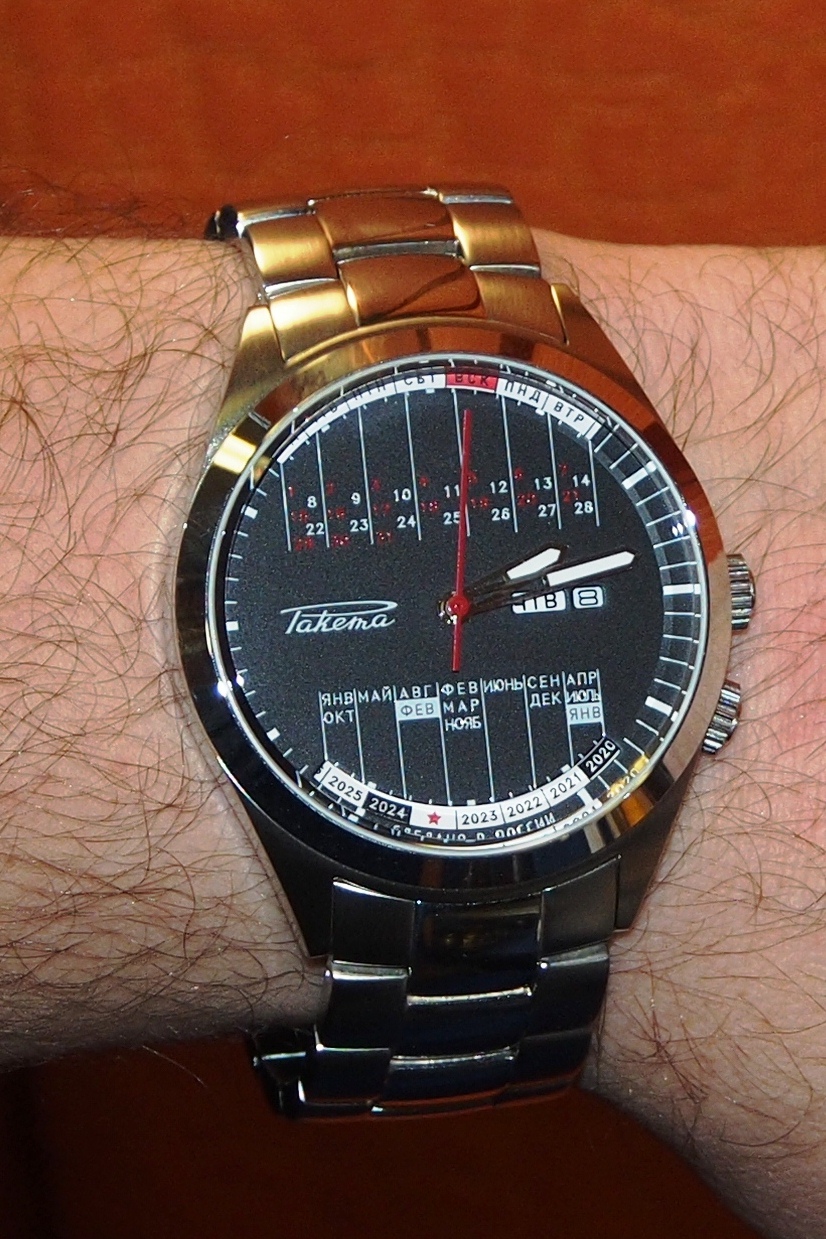 А ведь они есть! И их не так уж мало! Начиная с коробки (фото которой, к сожалению, нет). Она вызывает ощущение ВЕЩИ! Но это не главное. Сами часы. Они, несмотря на некоторую простоту и даже примитивизм в отдельных деталях, не воспринимаются как убогая поделка! И визуальное восприятие и тактильные ощущения вполне "на уровне"! А сам корпус, точнее, его форма, просто хорош! к моему величайшему удивлению, довольно крупные (43мм) часы на моём сравнительно тонком запястье не смотрятся как "шайба" или "будильник". Напротив, "легли как влитые"! Поначалу думал, что надевать их буду крайне редко, "под настроение", но... НОШУ уже несколько дней и не чувствую никакого дискомфорта! Теперь про календарь. А ведь это усложнение- вовсе не бесполезная игрушка! Календарь может оказаться полезным даже в наш электронный век! Представьте себе- где-нибудь на пикнике в лесу, обсуждая планы на предстоящее мероприятие (а у нас ведь так и бывает- не успеет закончится одна гулянка, а в головах уже мысли о предстоящей новой!