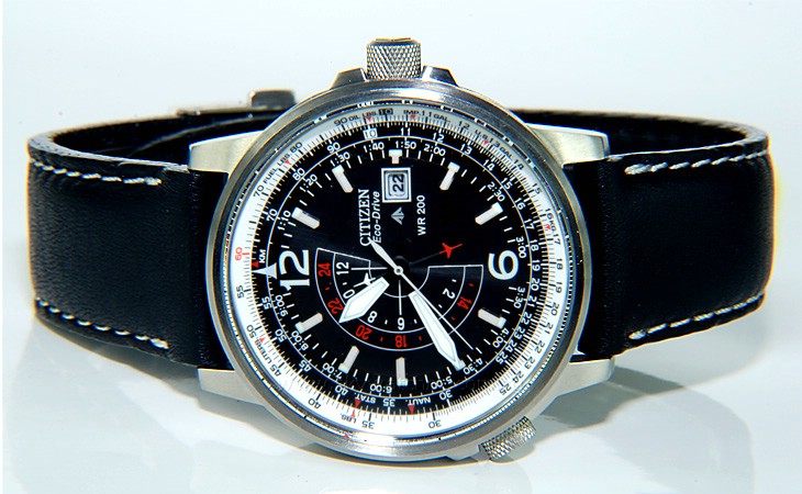 Функции: 12/24-часовой формат времени, двойное время (GMT), вращающаяся внутренняя авиационная линейка