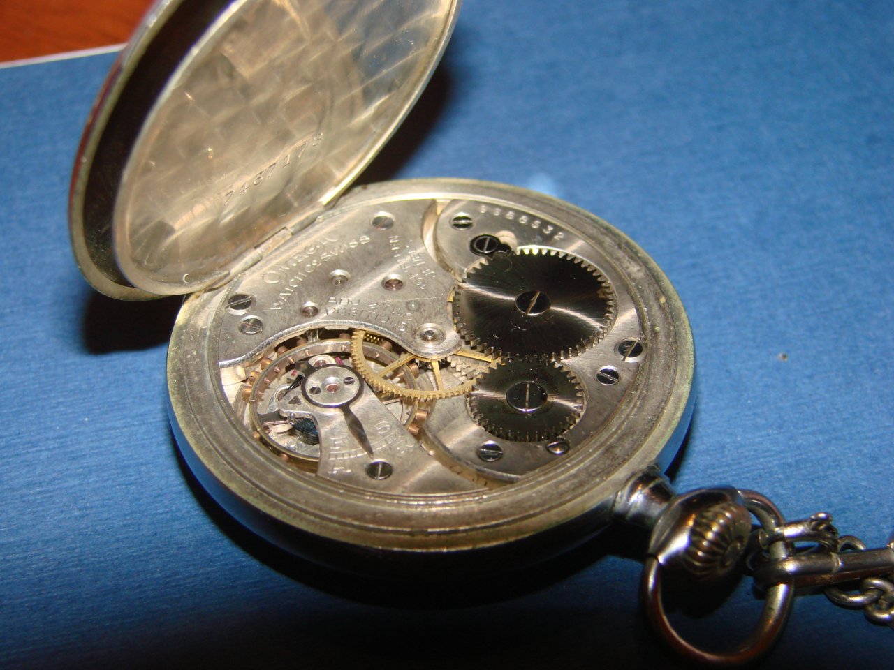 Согласно семейному преданию, эти часы мой прадед получил в качестве ценного подарка от некоего командира во время войны - когда привел в Сталинград состав (прадед был машинистом). Имя дарителя мне неизвестно. Под крышкой часов нацарапанные иголкой номера - это вероятно номера из ломбарда.