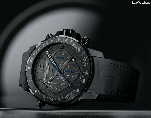 Новая лимитированная модель Nabucco Cuore Caldo Twelve (Ref. 7900 SR SPE12) от швейцарской часовой компании RAYMOND WEIL имеет круглый корпус из 18-каратного розового золота, титана, нержавеющей стали и углеродного волокна, диаметром 46 мм, толщиной 16,7 мм, водонепроницаемый до 100 метров. Фиксированный безель из 18-каратного розового золота с выгравированной тахиметрической шкалой. На торце золотой рифленой защищенной заводной головки, расположенной на 3 часах - логотип бренда. Золотые пушеры хронографа расположены на 2 и 4 часах. Сапфировое стекло установлено на лицевой стороне корпуса (с двусторонним антибликовым покрытием) и на его задней крышке. Матово-черный циферблат с накладными золотыми часовыми индексами, надписью "TWELVE", наименованием бренда (последние два из них - на 12 часах), окантовкой счетчика хронографа и указателя запаса хода. Стрелки позолоченные.