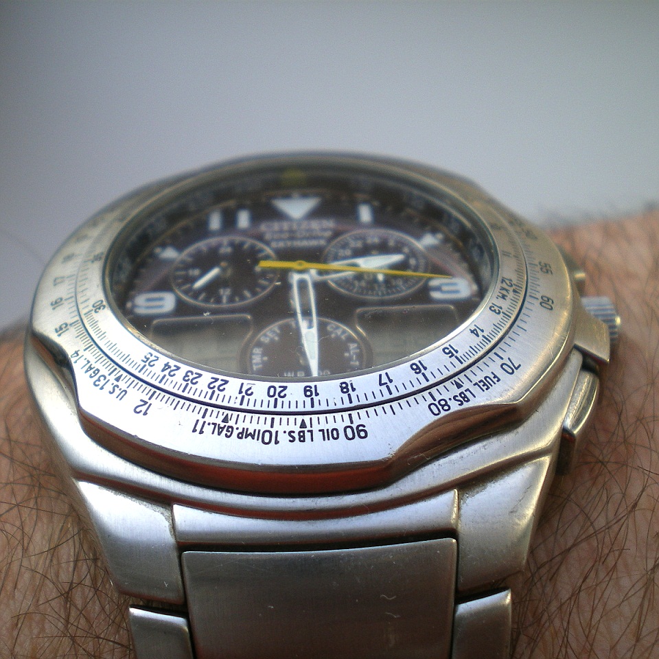 Часы совмещают функциональность EcoDrive (зарядка от солнца), хронографа, будильника, таймера. Показывают мировое время (UTC) и время в 30 городах мира, в т.ч. московское. Считаются профессиональной принадлежностью пилота, но полезны любому, кто часто путешествует или просто общается с людьми из других стран.