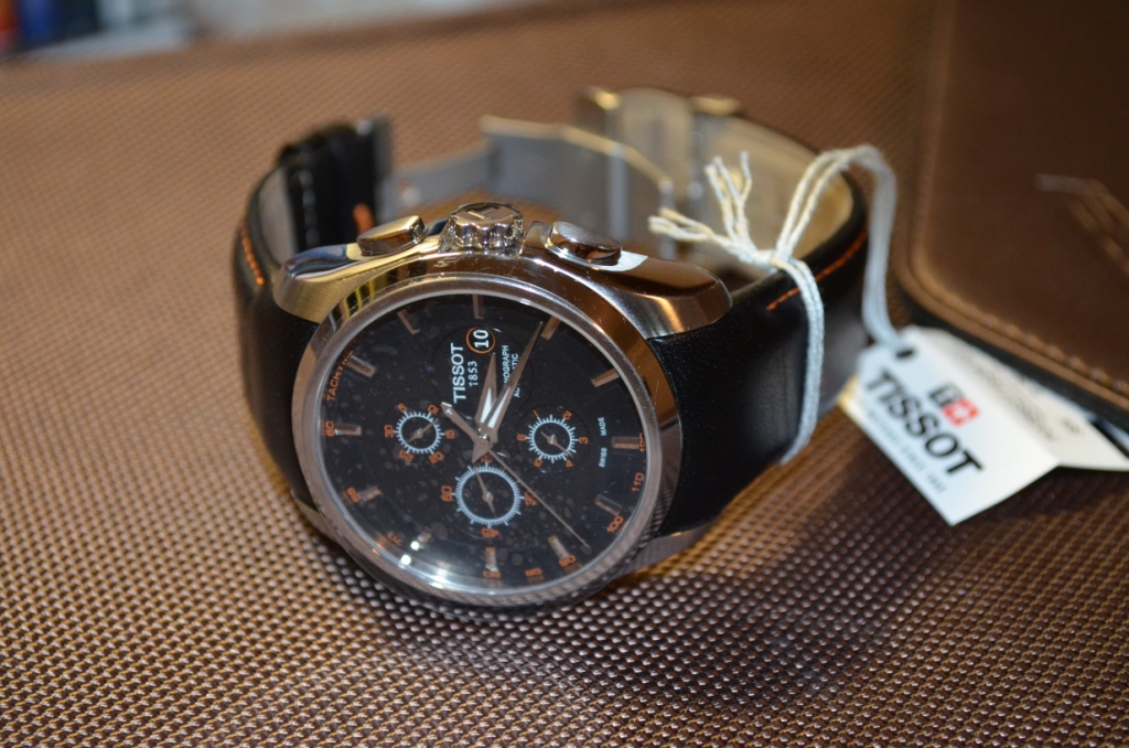 Мужской механический хронограф. Швейцарский механизм - калибр ETA С01.211. Светонакопительный состав на стрелках и метках часа. Корпус часов выполнен из нержавеющей стали L316. Сапфировое стекло. Ремешок черного цвета из натуральной кожи. Водозащита 100м. Потайная застежка в виде клипсы.