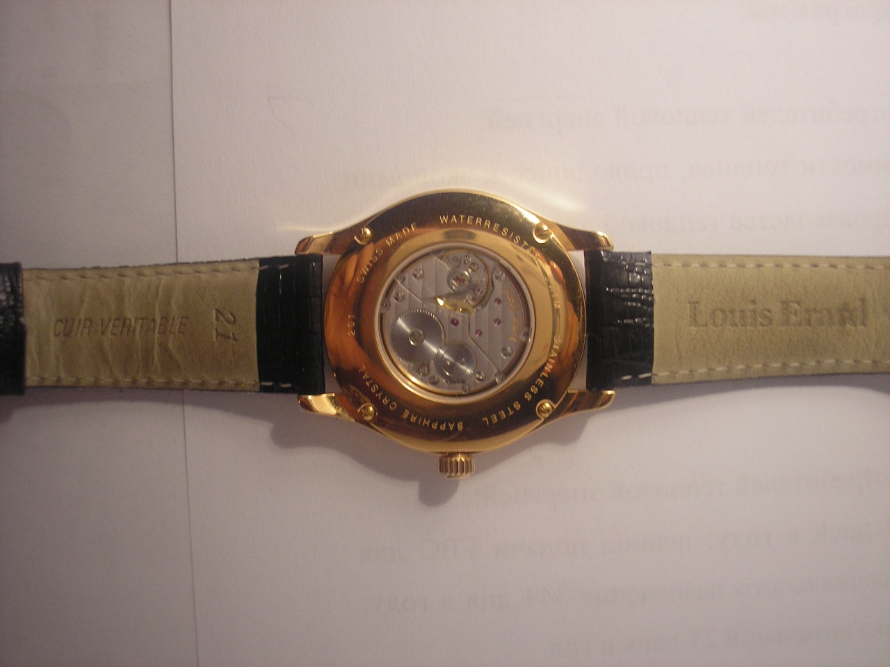 по исполнению и тактильным ощущениям могу сказать, что вопросов никаких нет. все ровно, гладко, без перекосов царапин и т.п. еще понравился ремешок, точнее то, что в районе застежки он тоньше, дабы компенсировать толщину застежки (надпись Louis Erard на застежке вырезана, а не нанесена напылением, что порадовало.логотип фирмы на ЗГ тоже выделен рельефно).