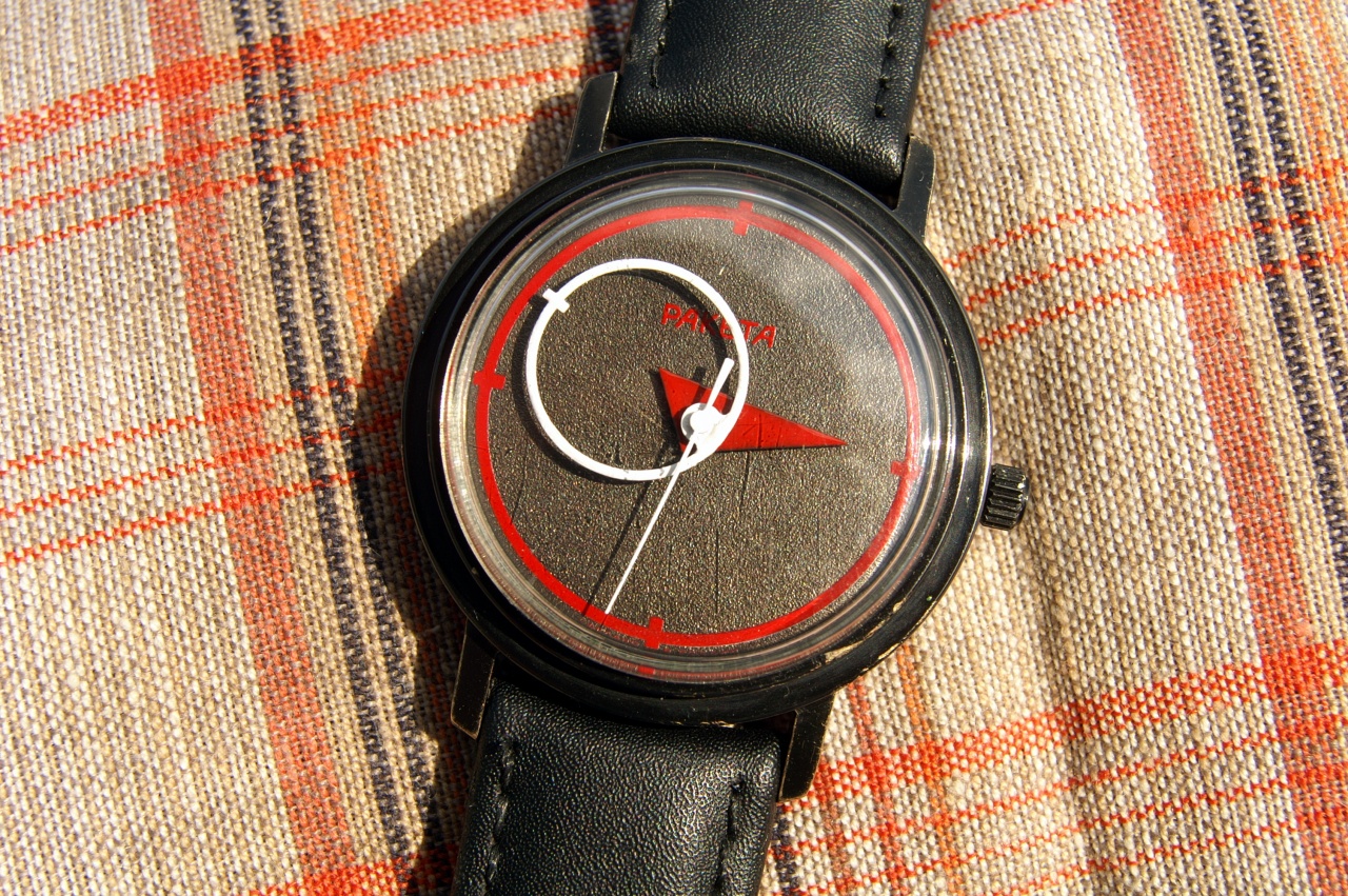 Вот такой авангардный "Коперник" начала 1990-х. Оформление циферблата навеяно пропагандистским плакатом "Клином красным бей белых" 1920 г. советского художника Лисицкого. Как и на плакате, на экземпляре использовано только три цвета, красный, черный и белый.