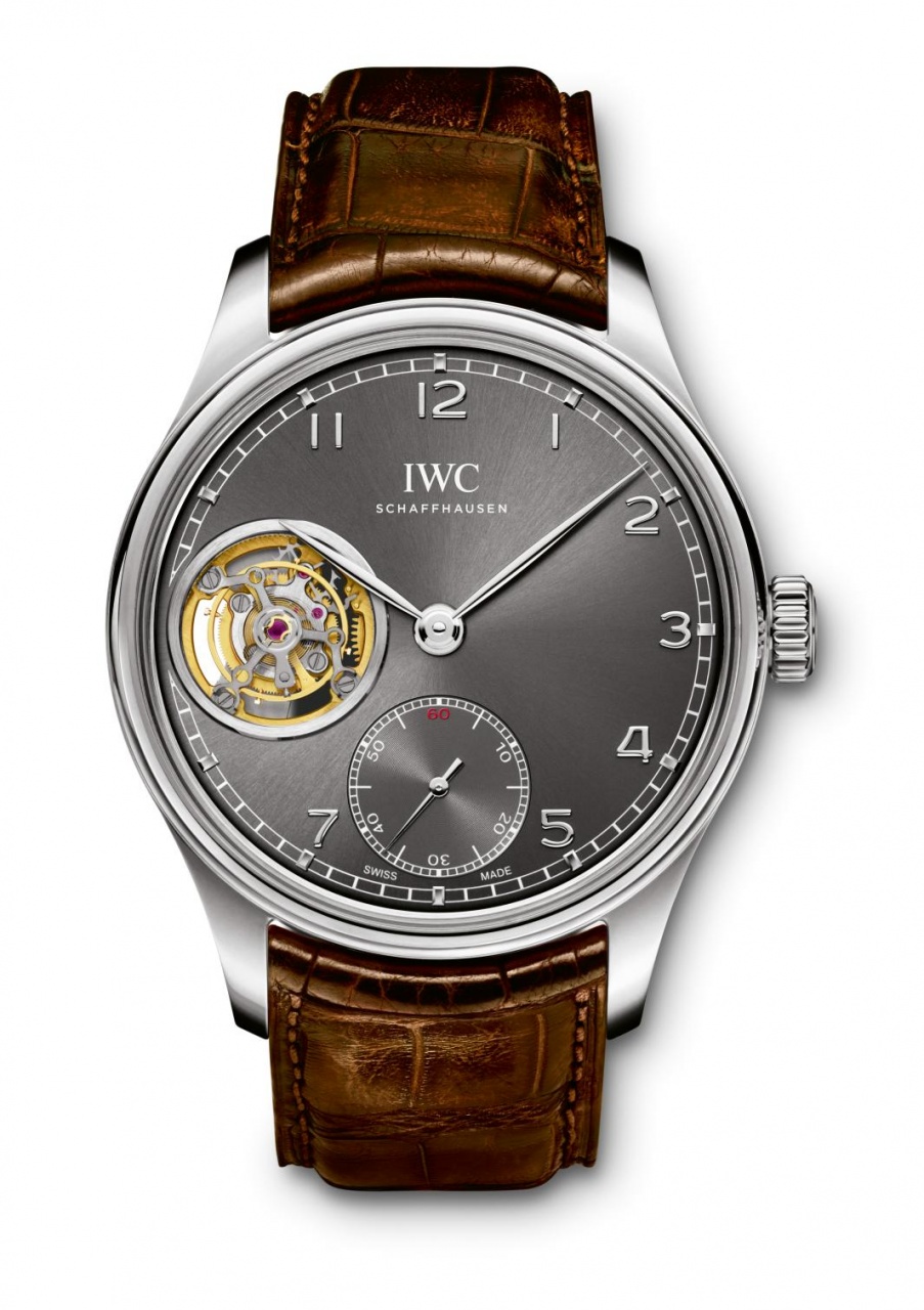 Дизайн новой модели Portuguese Tourbillon от швейцарской часовой компании IWC выполнен в элегантном классическом стиле. Круглый полированный корпус, изготовленный из 18-каратного розового или из 18-каратного белого золота (Ref. IW546301 и IW546302), диаметром 43,0 мм, толщиной 11,0 мм, водонепроницаемый до 30 метров. На торце рифленой заводной головки, расположенной на 3 часах, выгравирован логотип бренда. Сапфировое стекло установлено на передней стороне корпуса (с двусторонним антибликовым покрытием) и на его задней крышке. Циферблат серебристого или черного цвета с лучистым сатинированнием, с накладными золотыми арабскими цифрами и часовыми индексами.
