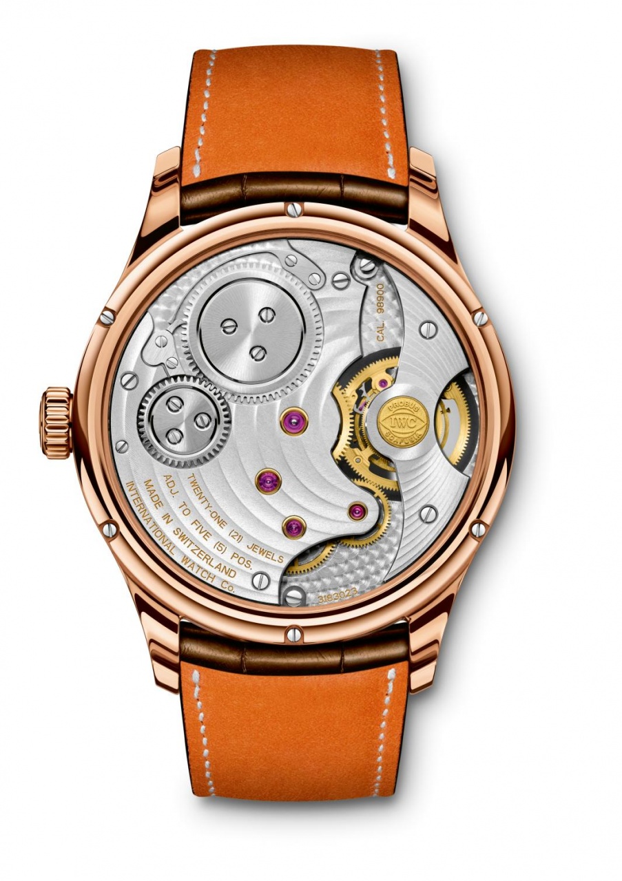 Модель оснащена мануфактурным швейцарским механизмом с ручным заводом IWC 98900, на 21 камне, с балансовой частотой 28800 полуколебаний в час (4 гц), запасом хода 54 часа, функциями индикации часов, минут (посредством соответствующих центральных стрелок), секунд (на малом боковом циферблате, расположенном на 6 часах), а также с парящим минутным турбийоном (состоящим из 64 деталей и расположенным в круглой апертуре на 9 часах). Калибр отлично отделан и декорирован; отрегулирован в пяти позициях.