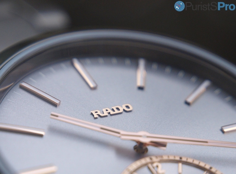 шкала счетчика второго часового пояса цвета родия или розового золота, логотип Rado цвета родия или розового золота