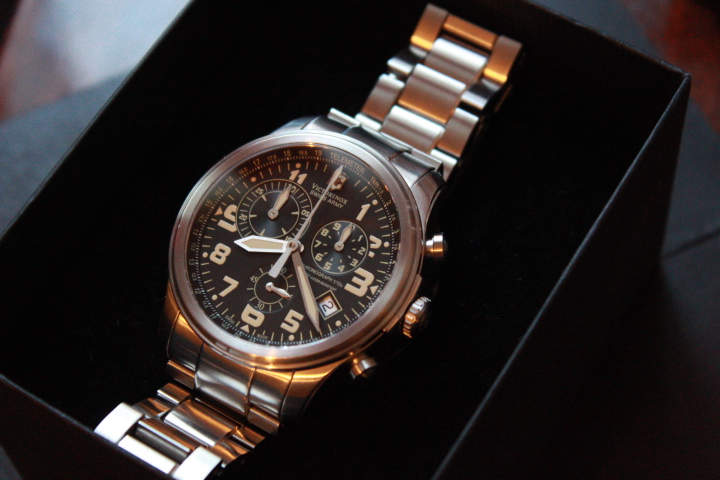 Продаю потрясающие Victorinox Infantry Vintage Chronograph 241313.Швейцарский кварцевый хронограф с телеметрической шкалой. Стекло - сапфировое с тройным антибликовым покрытием. Механизм ETA 251.272 на 22 камнях. Люминисцентные стрелки и метки, водозащита 100м. Литой металлический браслет с раскладывающейся застежкой.