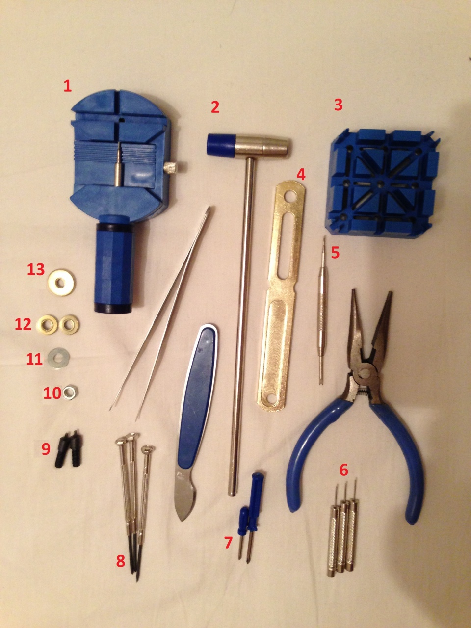 Недавно обзавелся маленьким набором инструмента для часов. Купил в довесок за небольшие деньги. Цель исключительно любительская - менять ремни/браслеты. Изучив набор, я понял что "ничего в нем не понял", т.е. не знаю предназначения большинства инструментов в нем. В связи с этим прошу помощь опытных форумчан в просветлении темной головы. Расскажите (желательно с фотографиями/ссылками) для чего нужны данные инструменты?