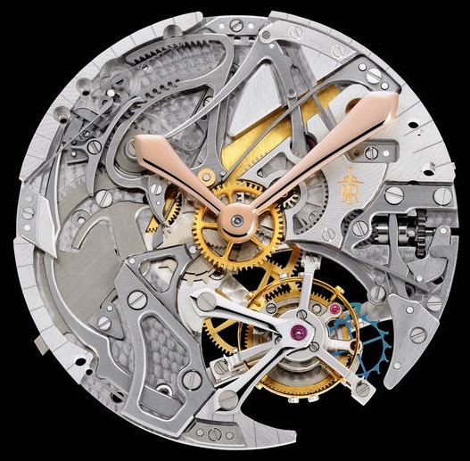 Оригинальные модели от Manufacture Royale оснащены эксклюзивным механизмом с уникальным дизайном, которым можно наслаждаться, благодаря прозрачным передним и задним сапфировым стеклам часов. Этот механизм был разработан в мануфактуре Fabrique du Temps талантливыми часовщиками Мишелем Нэвасом и Энрико Барбэзини, основателями компании BNB. Над калибром мастера работали три года. Диаметр механизма – 32 мм, толщина – 5.54 мм. Механизм с минутным турбийоном и минутным репетиром с частотой 3 Гц, т.е. 21.600 полуколебаний в час, запасом хода на 100 часов, состоит из 319 частей, собран на 29 драгоценных камнях (рубины). Механизм с турбийоном и минутным репетиром, отмечающим часы звучанием ноты до, а минуты - ми диез, напоминает калибры карманных часов 19-го века.