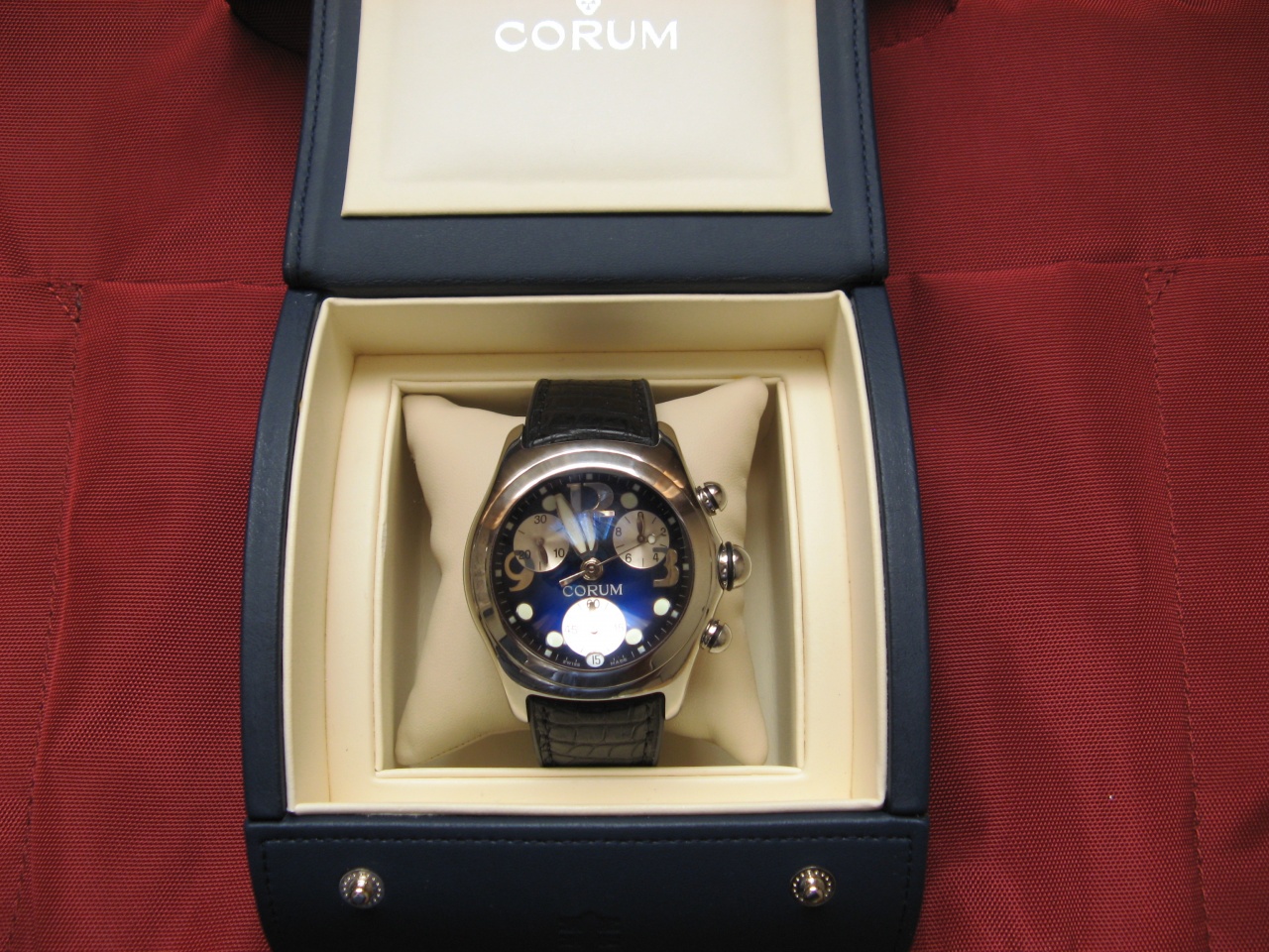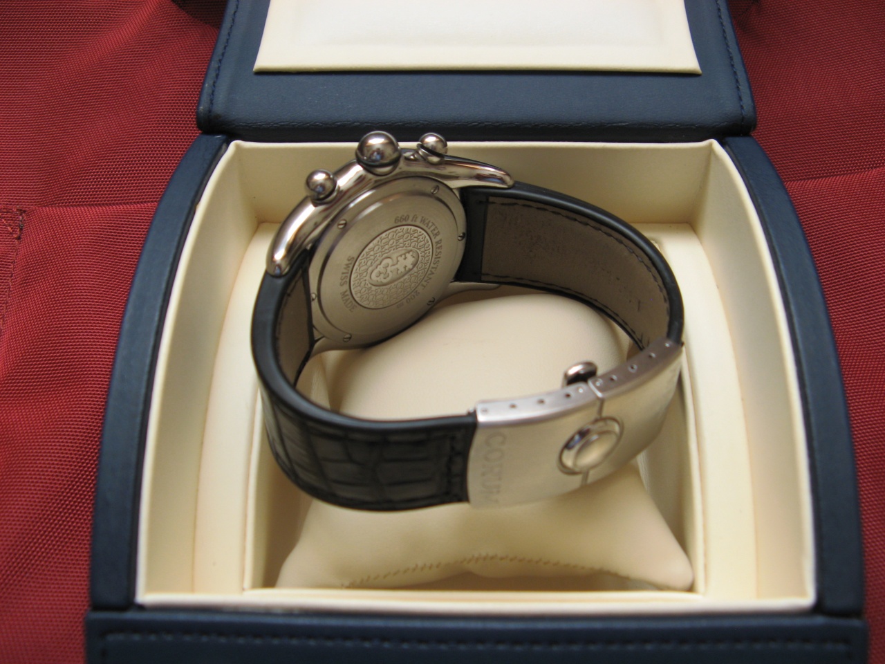 Циферблат -глубокого.синего цвета с перламутром.Счетчики хронографа -кремовые с гельеше