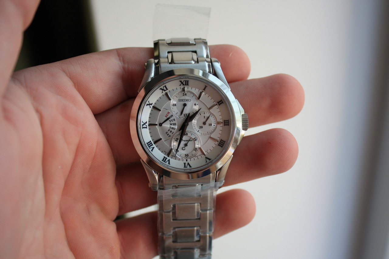 Секундная стрелка вынесена на отдельный циферблат. 12-ти и 24-х часовой формат времени. Ретроградный указатель дня недели.