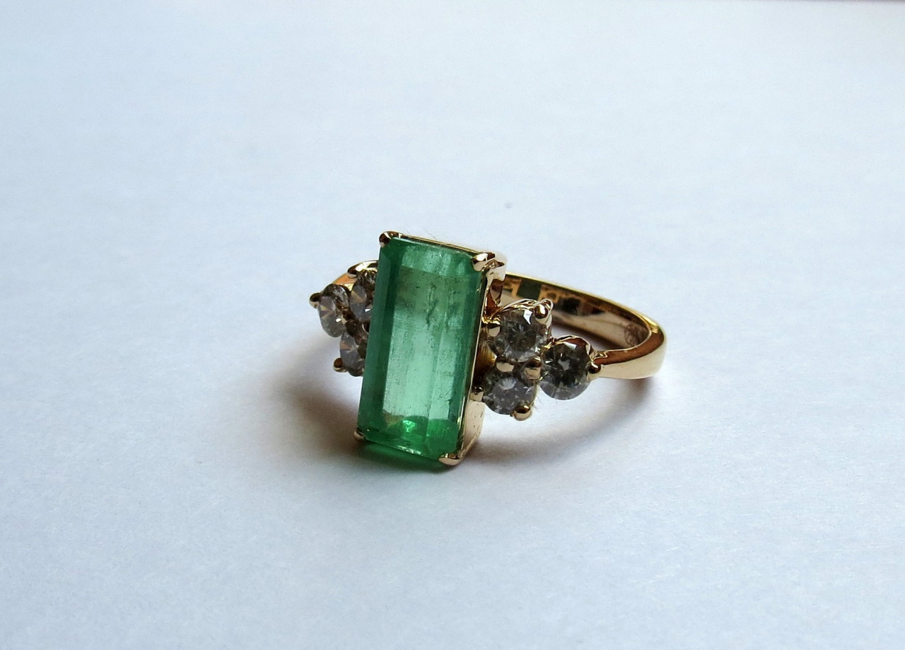 Кольцо 750* изумруд 3 кр, брилл 0.66