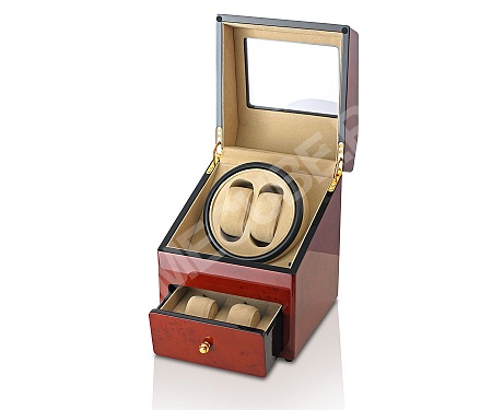 Красивая шкатулка для двух пар часов с автоподзаводом предназначена для одновременного подзавода двух пар часов на одном движке. Также шкатулка предназначена для хранения двух пар механических часов: для чего в ней предусмотрен деревянный выдвижной ящичек.