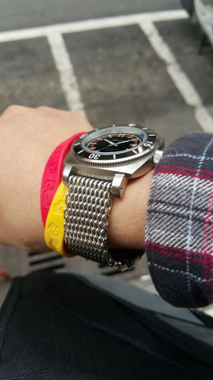 Кстати на фото видно, что как меш-браслет, так и кожаный ремень вполне органично будут смотреться с этими часами.
