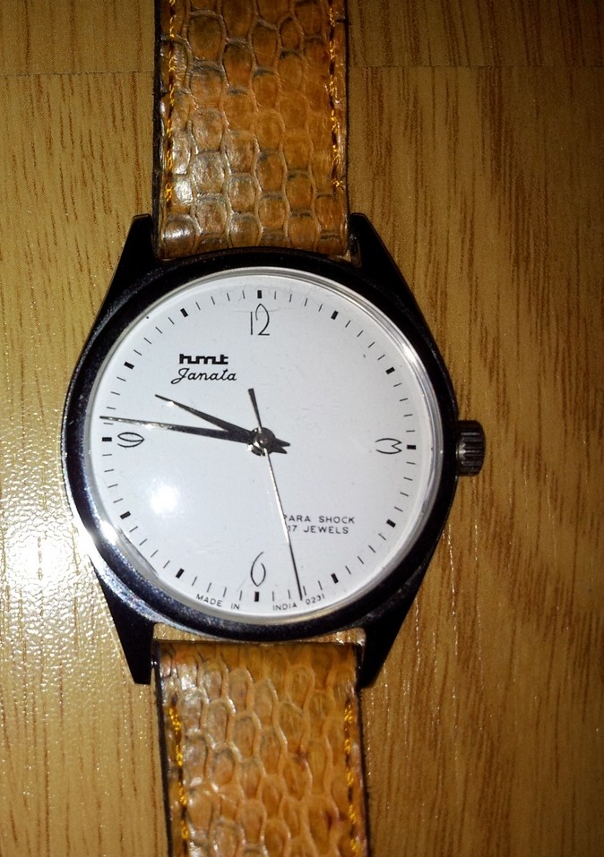 Продаю часы HMT Janata. Производятся в Индии на собственном механизме. Заказывал несколько месяцев назад оттуда через посредника. Ремень к часам заказывался отдельно из змеиной кожи. Отдам также оригинальный кожаный ремень, с которым они приехали. Надевалась на руку раз 10 от силы.