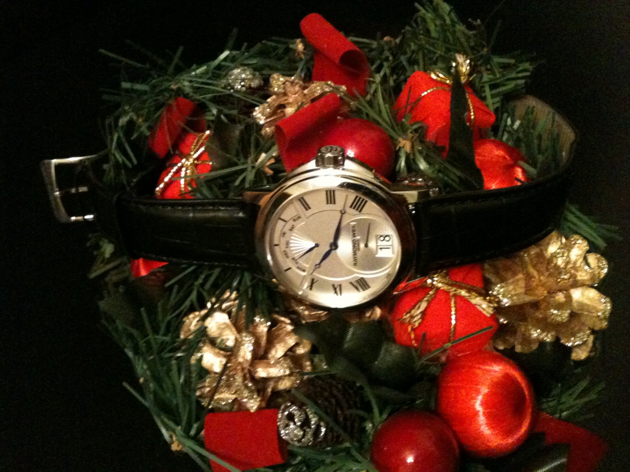 Ретроградный указатель дня недели. Big Date. Стрелки выполнены из вороненой стали.