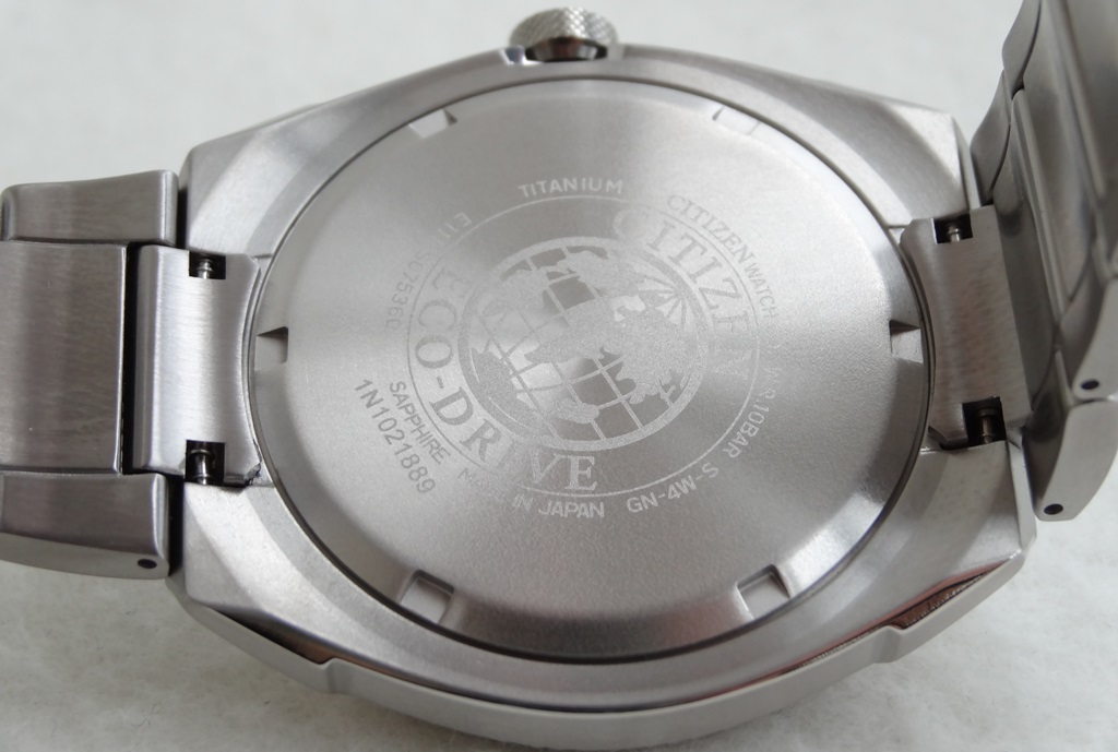 Особенности: часы поражают своей простотой, мощностью и красотой, имеют титановое покрытие “Super Titanium”, что само по себе уже является очень хорошим противоударным качеством этого продукта, сапфировое стекло, завинчивающая задняя крышка, точный кварцевый калибр, оснащенный патентованной технологией CITIZEN Eco-Drive, заключающаяся в размещении фотоэлементов, скрытых под циферблатом и постоянно подзаряжающих аккумулятор часов, продолжительность работы после полной зарядки аккумулятора при последующем хранении в темноте 240 дней, система предупреждения о низком уровне заряда аккумулятора за 72 часа до критического уровня (увеличивается шаг секундной стрелки), дата расположена на отметке 3-х часов, голова расположена на отметке 3-х часов, люминесцентные стрелки, полный комплект