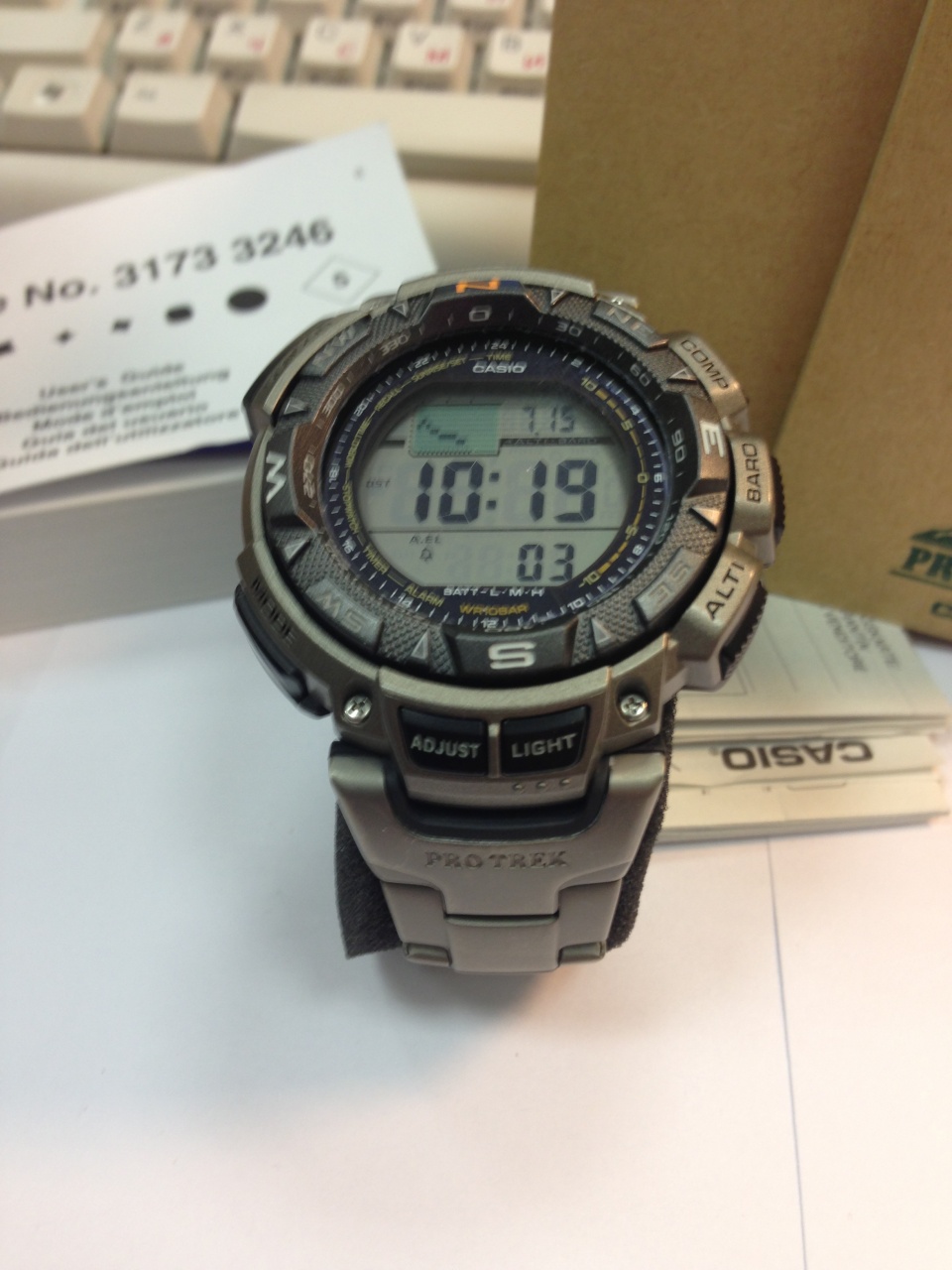 Корпус из нержавеющей стали с полиуретановыми вставками. Жесткое минеральное стекло. Браслет из титана. Двойной ЖК-дисплей.