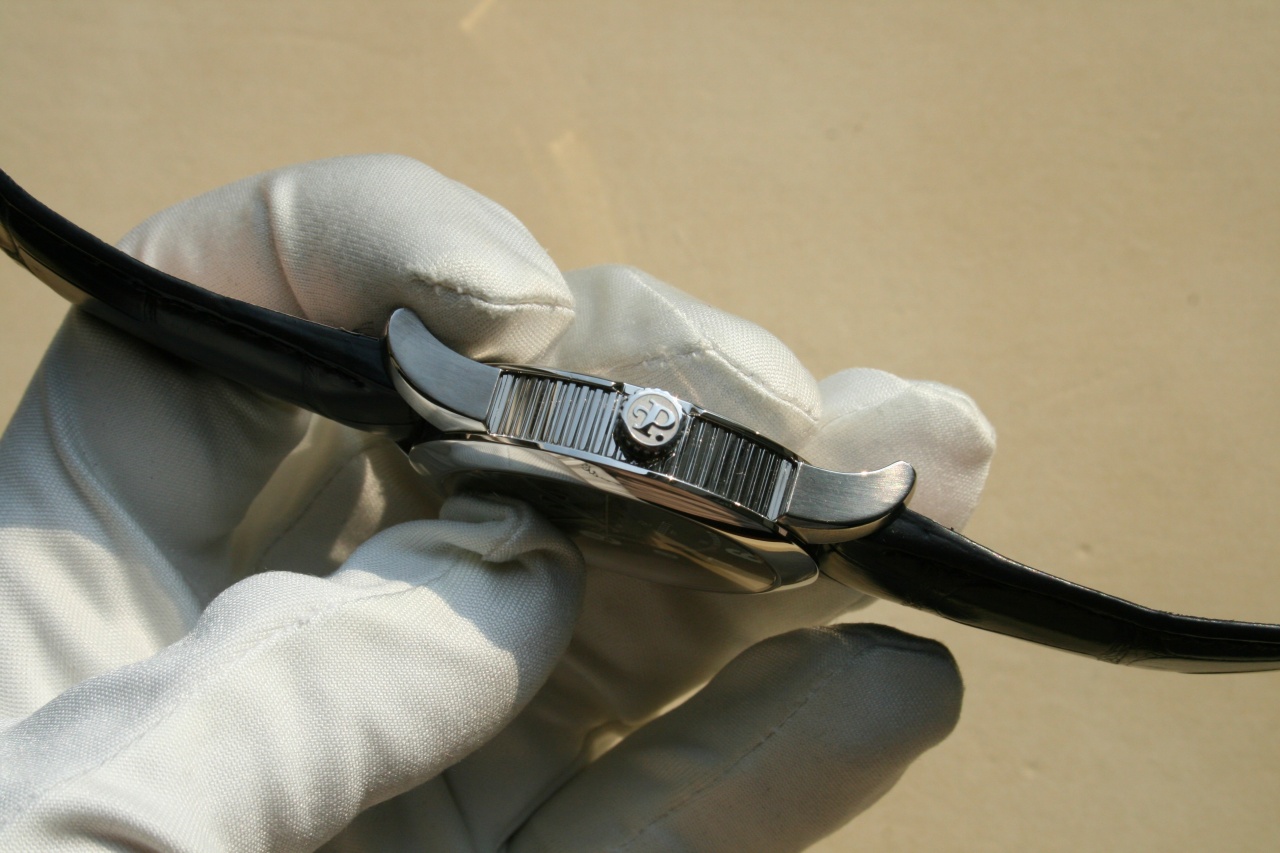 размеры: 40 мм в диаметре без учета заводной головки (42.5 мм включая заводную головку), 50.7 мм по краям дужек, 11.6 мм в высоту