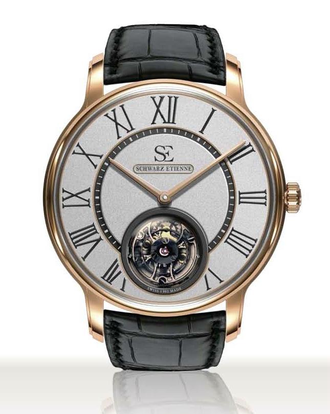 Швейцарская часовая компания Schwarz Etienne представила свою новую модель Tourbillon, которая выпускается в двух вариантах: в 18-каратном белом и в 18-каратном розовом золоте.