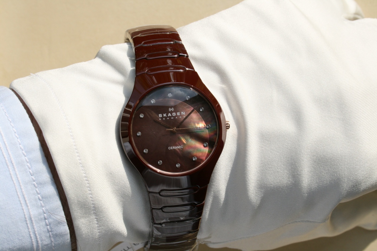 ~~~ [женские] SKAGEN CERAMIC * коричневая керамика * перламутр * SWAROVSKI ~~~