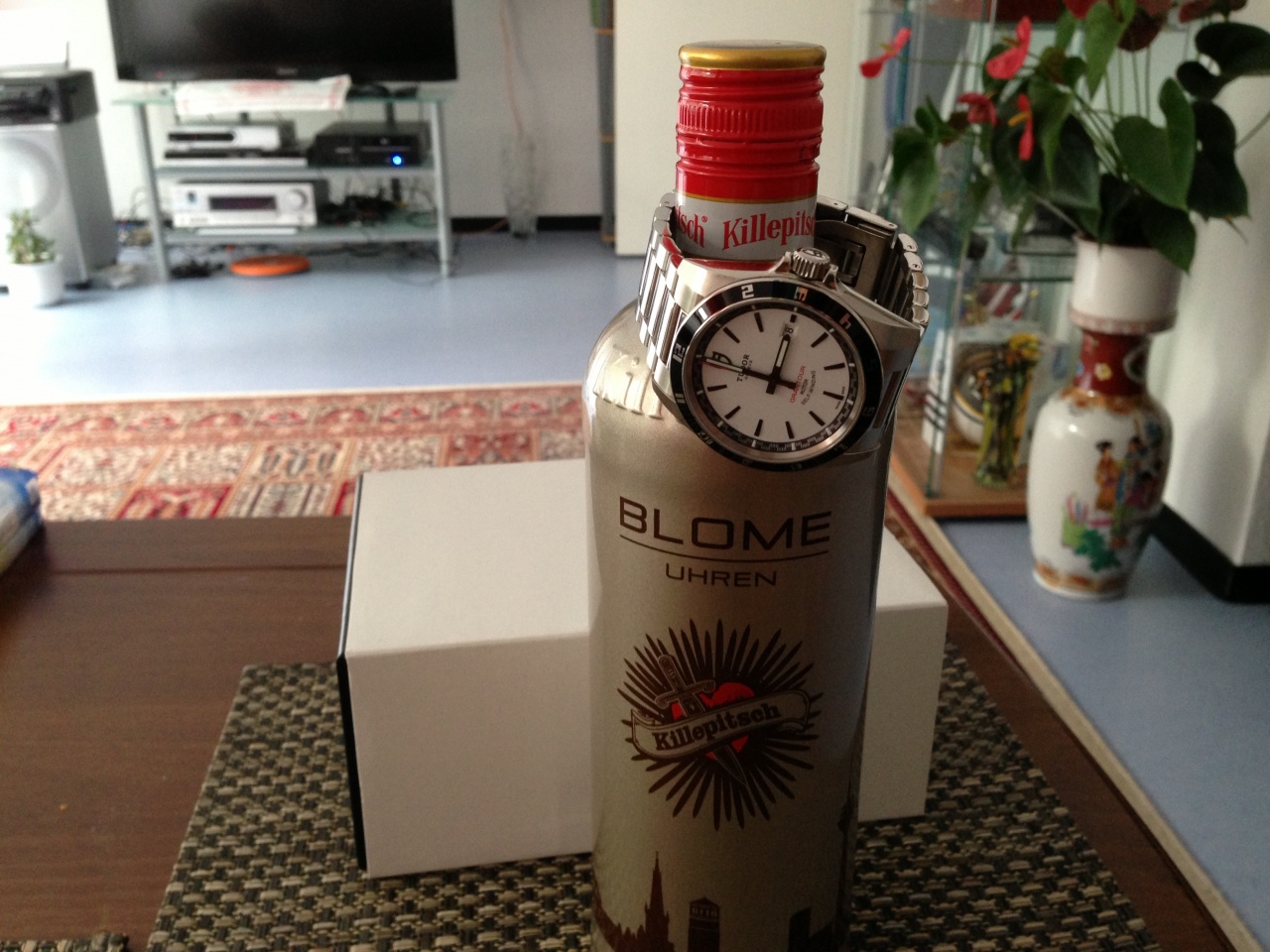 Но сегодня, проходя, мимо Blome, что на Кё в Дюссельдорфе, думаю дай ка зайду и спрошу есть ли в наличии данный Тудор. Хотя, особо не надеялся, но попытка - не пытка. Нас с женой встретил сам мастер, очень приятный и доброжелательный человек. Показал несколько моделей, которые не выставлены на витрине, среди них Грантура не было. Попросив подождать минутку, мастер вернулся с моим Тудором и именно белым, как я хотел. К слову сказать, имея черный Брайт, хотел именно с белым цифером. И тут как раз он, в пленках, ни разу не одеванный, все как надо. Дав скидку в 10% и бутылку Killepitsch, продавец со мной любезно попрощался.