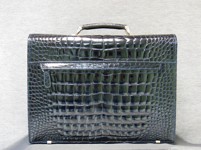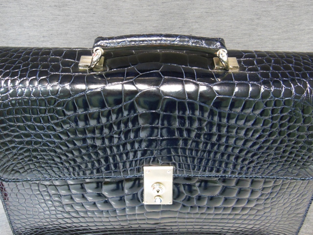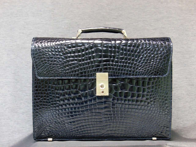 Продаю элегантный мужской портфель ручной работы «Parmeggiani» из 100% лакированной кожи крокодила высочайшего качества выделки. Портфель застегивается на замок, запирающийся на ключ. Детали и декоративные элементы портфеля изготовлены из стали. Внутренняя часть портфеля изготовлена из 100% кожи тёмно-синего цвета, и имеет два больших отделения для переноски документов и прочих вещей, два дополнительных отделения, застегивающихся на молнии с бегунками из кожи крокодила, и кармашки для хранения 3 ручек, смартфона, визитных карточек. Снаружи портфель имеет дополнительное отделение для документов, застегивающееся на молнию с бегунком из кожи крокодила.
