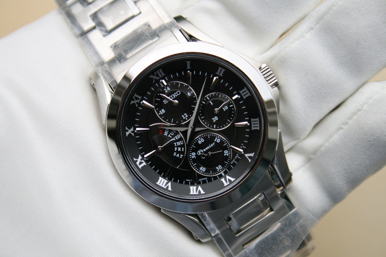 ~~~ SEIKO PREMIER RETROGRADE SRL023P1 ** браслет ** черный циферблат ~~~