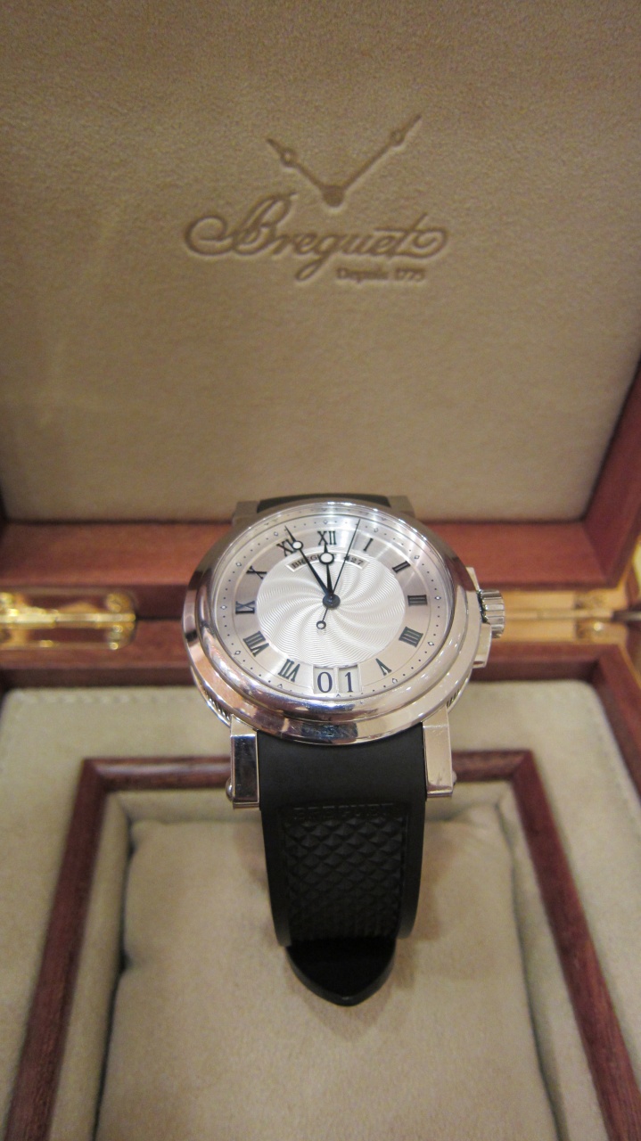 Автоматический механизм. Циферблат из посеребренного 18-каратного золота с гильошированным вручную узором. Часовая шкала с римскими цифрами Breguet и люминесцентными минутными метками. Большой указатель даты в положении "6 часов". Люминесцентные граненые стрелки Breguet с наконечником в форме яблока из вороненой стали. Задняя крышка из сапфирового стекла с гильошированным вручную узором. Запас хода 65 часов. Водонепроницаемость до 100 м.