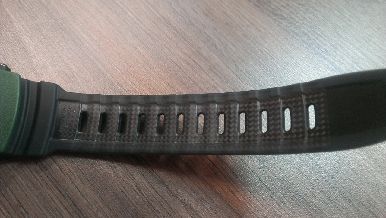 Для меня ремешок достаточно мягкий и удобный. С внешней стороны имеет черный - матовый цвет, с внутренней стороны ремешок прозрачный имеет рифления типа «елочка», видны волокна карбона. Надеюсь, прослужит долгую и верную службу.