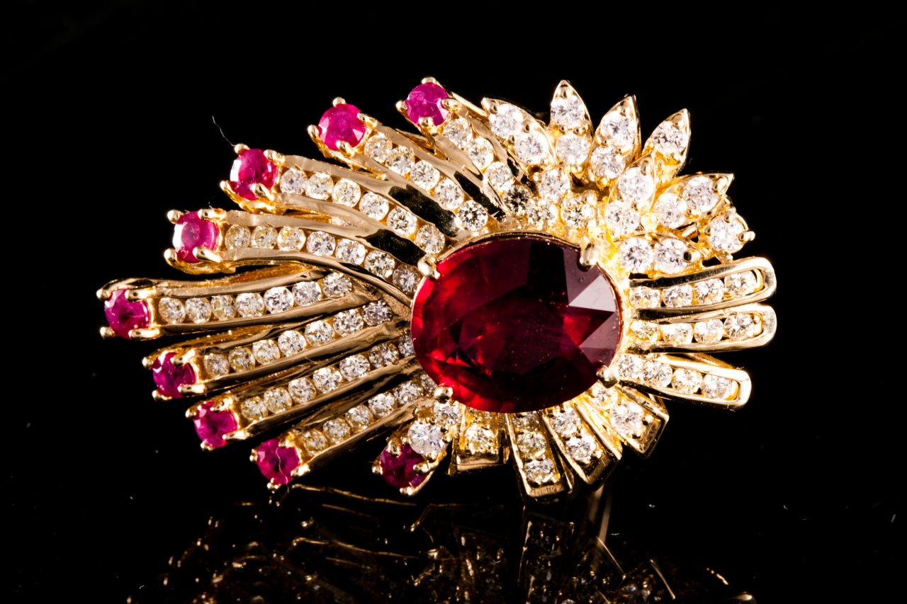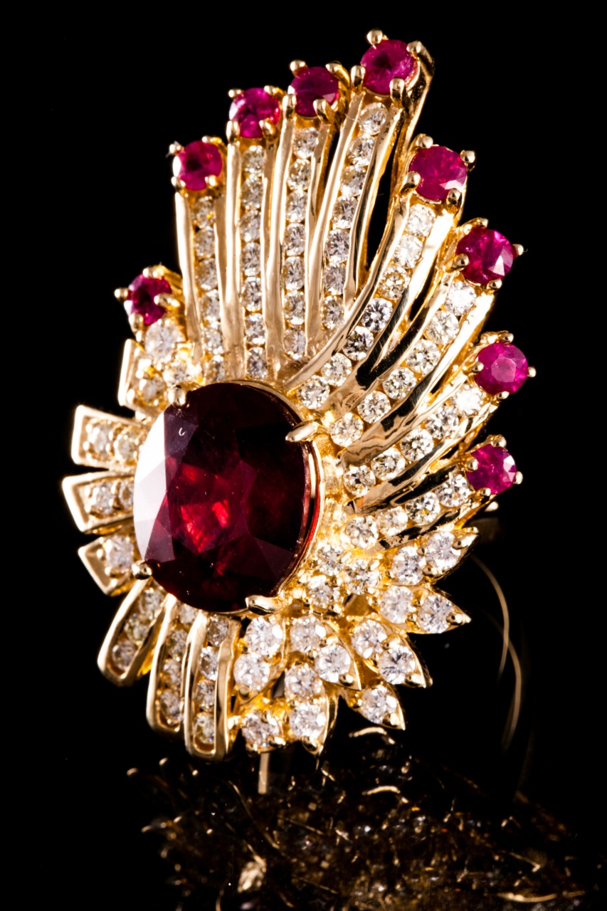 золото 585 пробы с рубинами (10 кт) и бриллиантами общим весом 3.7 кт