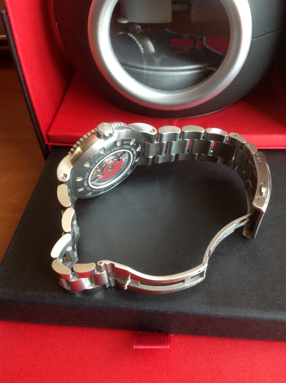Центральные стрелки для часов, минут и секунд, окошко для даты, мгновенная дата, корректировка даты, особо точный механизм и секундомер