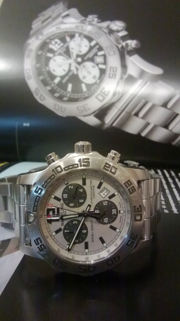 Часы приобретены мною у официального дистрибьютора Breitling в салоне Mercury в Москве 20-09-2012. 03-06-2013 заменен элемент питания на новый в Breitling центре на Бутырском валу. Часы на гарантии. Ходят идеально. Есть незначительные царапины от ношения. Полный комплект документов. Любые проверки за Ваш счет. На фото именно те часы, которые продаются. Причина продажи - слишком большие (44мм) для моего запястья.